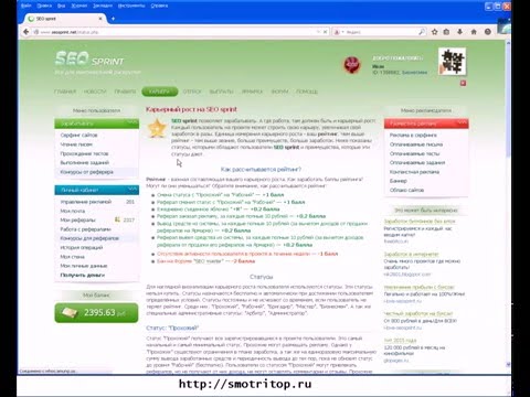 Видеоурок Выполнения задания SEO sprint Как выполнять много заданий Заработок на проекте SEO sprint и Как привлечь очень много рефералов! Как создать задание на seosprint Как привлечь рефералов